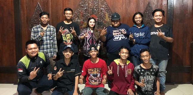 Anak dari Calon Wakil Gubernur Jawa Timur Puti Guntur Soekarno, Rakyan Ratri Syandriasari Kameron dan Rakyan Danu Syahandra Kameron bersama pelestari kearifan lokal Paguyuban Sawunggaling menggelar sahur on the road di Kampung Lidah Wetan, Surabaya, Jawa Timur, Senin (4/6). BERIKUTNYA >