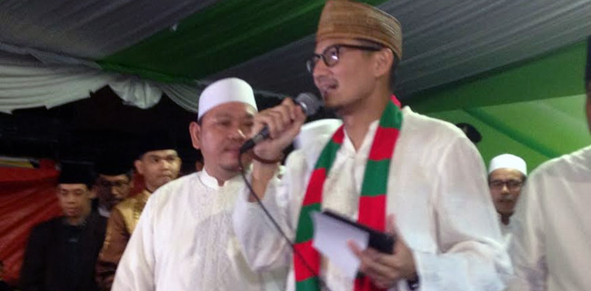 Warga yang semakin antusias dengan kedatangan Sandi terus menggemakan takbir dan memukul bedug.