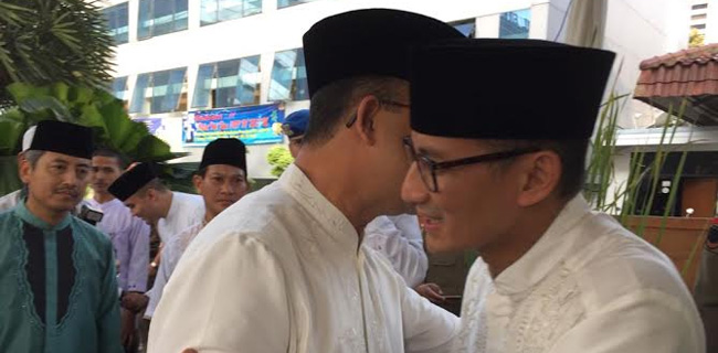 Usai salat Ied, Sandi bertemu Gubernur DKI Jakarta Anies Baswedan yang sebelumnya melangsungkan salat Ied di Masjid Istiqlal. Sesampainya di Balaikota, mereka berjabat tangan dan saling meminta maaf.
