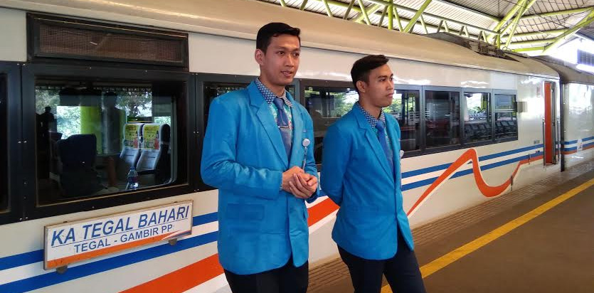 Bagus yang bertugas di rangkaian KA Tegal Bahari melayani rute Jakarta menuju Tegal, Jawa Tengah mengaku menikmati pekerjaannya itu.