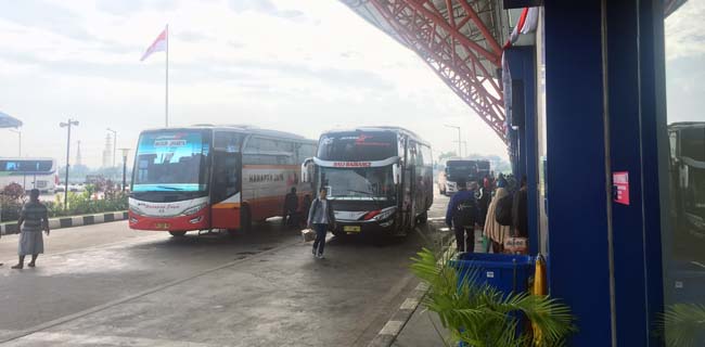 Kantor Berita Politik RMOL, di terminal Pulo Gebang bus dari daerah pemudik masih bergantian menurunkan penumpang di area kedatangan.