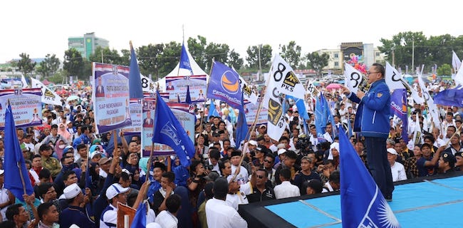 Begitu seru Ketua Umum PAN Zulkifli Hasan di hadapan ribuan massa saat memimpin kampanye akbar pasangan yang diusung PAN, PKS, Nasdem itu di Lapangan Sampoerna Pekanbaru, Kamis (21/6).