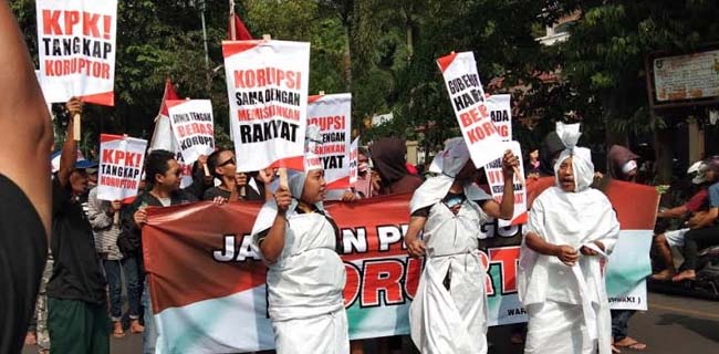 Aksi teatrikal ini dilakukan dengan memakai kostum pocong putih. Selain teater, massa aksi juga menebarkan berbagai spanduk dan poster yang bertuliskan: Jangan Pilih Gubernur Koruptor, Gubernur Harus Bebas Korupsi, KPK Tangkap Koruptor, Korupsi Sama Dengan Memiskinkan Rakyat, Jateng Bebas Korupsi serta berbagai atribut demonstrasi lainnya.