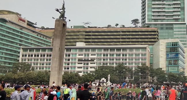Kegiatan CFD juga kembali normal, tampak para pedagang kaki lima ramai di pinggiran jalan Sudirman-Thamrin selain warga yang berolahraga.