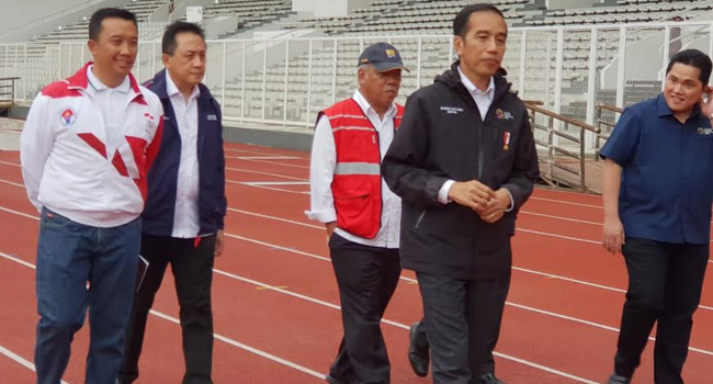 Turut hadir dalam peninjauan tersebut, Menteri Pemuda dan Olahraga Imam Nahrawi, Menteri Sekretaris Negara Pratikno, Kepala Badan Ekonomi Kreatif Triawan Munaf dan Ketua INASGOC Erick Thohir.