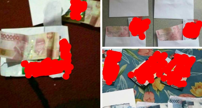 Hal ini bisa dipantau dari postingan warganet di sejumlah media sosial (medsos) baik Facebook maupun WhatsApp. Dari berbagai postingan tersebut, terlihat gambar amplop warna putih yang isinya uang kertas dan foto paslon peserta Pilkada Kudus.
