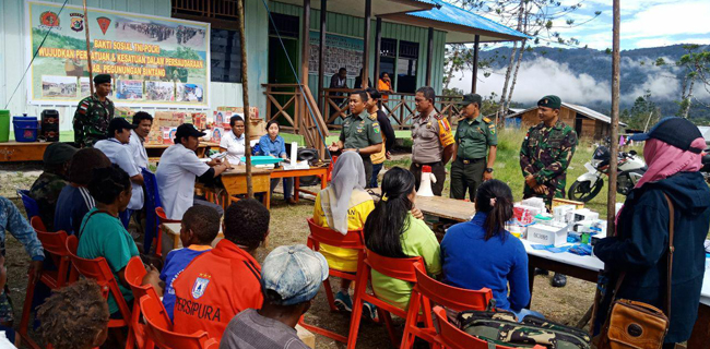 Prajurit Satgas Yonif RK 644/WLS bersama Koramil 1702- 01 Oksibil dan Polri melaksanakan bakti sosial kepada masyarakat dengan mengusung tema "Bakti Sosial TNI-Polri Wujudkan Persatuan Dan Kesatuan Di Dalam Persaudaraan" bertempat di Kampung Okmakot, Distrik Oksibul, Kabupaten Pegunungan Bintang, Papua, Minggu (1/7).