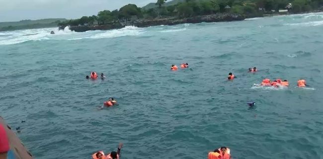Nampak dalam gambar yang beredar, sejumlah penumpang berada di permukaan laun dengan mengenakan pelampung keselamatan. Selain itu, ada juga sejumlah kendaraan yang turut tenggelam. [ian]