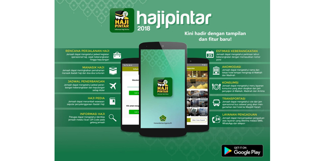 Aplikasi ini berikon gambar Kabah dengan tulisan "haji pintar". Sejumlah layanan tersaji dalam aplikasi ini, antara lain informasi seputar akomodasi, transportasi, dan konsumsi yang akan diterima jemaah selama di Saudi.