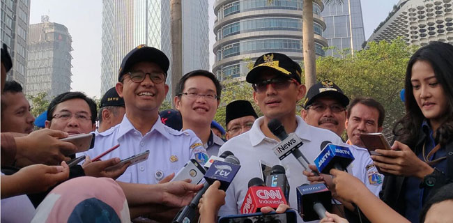 Gubernur DKI Jakarta Anies Baswedan dan Wagub Sandiaga Uno membuka apel tersebut yang diikuti 1200 peserta di Plaza Tenggara Gelora Bung Karno, Rabu (18/7).