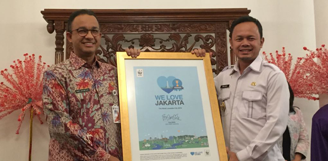 Kemudian, Bima menyerahkan plakat bertuliskan "We Love Jakarta, The Most Loveable City 2018" itu kepada Anies. Mereka pun sempat sedikit bergurau. Gurauan mereka disambut tawa oleh audience yang menunggu di Balairung, Balaikota.