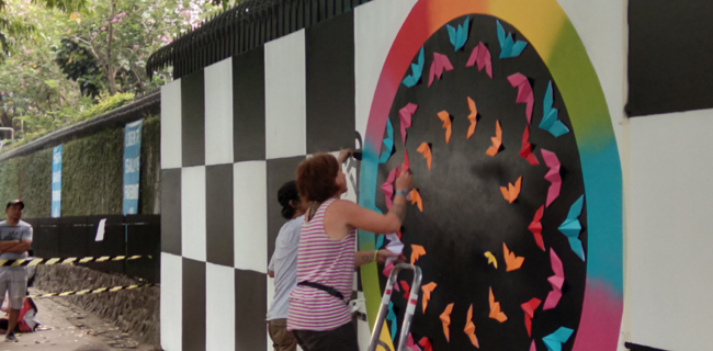 Institut Prancis di Indonesia (IFI) menggelar 'Live Street Art' kolaborasi seniman Perancis, Mademoiselle Maurice dan seniman Indonesia, Olderplus aka Oldy Jurakli saat momentum