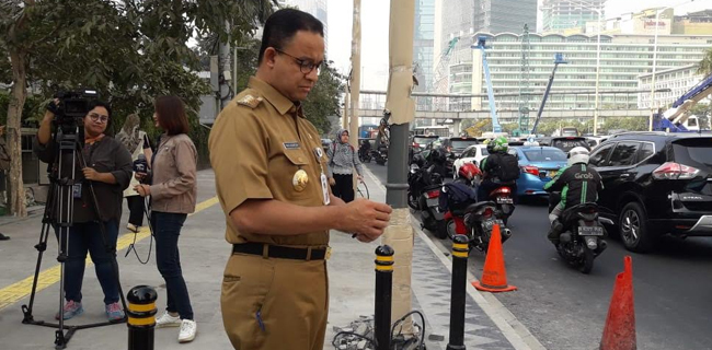 Hal ini disampaikan Anies saat meninjau pemasangan pelican crossing sebagai pengganti Jembatan Penyeberangan Orang (JPO) di kawasan bundaran Hotel Indonesia, Jakarta Pusat, Senin (30/7). Rencananya malam nanti, Dishub DKI membongkar JPO di bundaran HI.