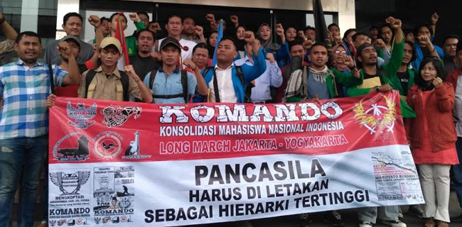 "Komando menyatakan dengan tegas, bahwa Pancasila menjadi hierarki tertinggi sebagai sistem berbangsa dan bernegara adalah jawaban terhadap permasalahan bangsa" ujar Adit dalam keterangan tertulisnya, Senin (30/7).