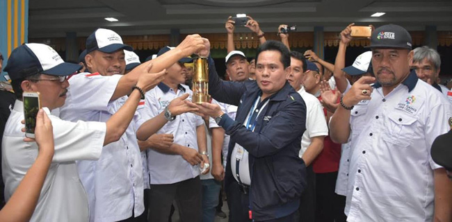Kedatangan simbol dari semangat olah raga negara-negara Asia itu, disambut antusias oleh warga dengan julukan Kota Lemang, Selasa (31/7).