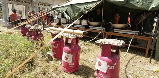 Bantuan ini dibagi di beberapa lokasi yakni 14 tabung di Dapur Umum PLN, 5 tabung di Dapur Umum TNI, 20 tabung di Posko Tanjung, 20 tabung di Posko Kahayangan, 20 tabung di Posko Gangga, dan 21 tabung di Posko Pemenang (Dapur Umum Pertamina). Bantuan tersebut diberikan langsung oleh Plt Direktur Utama Pertamina, Nicke Widyawati.