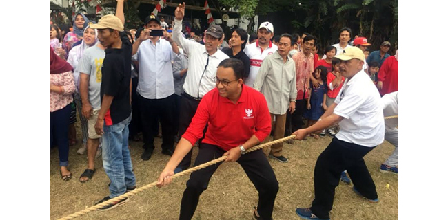 Anies mengatakan jika dirinya biasa mengikuti lomba tarik tambang di rumahnya bersama dengan warga.