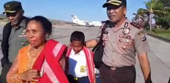 Dari foto yang beredar di Bandara EI Tari Kupang, Joni yang mengenakan seragam putih biru SMP berjalan bersama sang ayah dan ibu di landasan bandara.