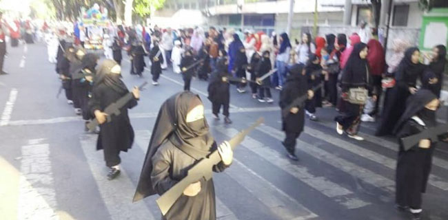 Namun demikian, dia tetap menyayangkan simbolisasi pasukan pejuang mengenakan pakaian layaknya pasukan khusus bercadar, apalagi dilengkapi replika senjata laras panjang. "Mestinya, bisa dengan simbol lain. Mengingat mereka masih kanak-kanak," ujarnya.