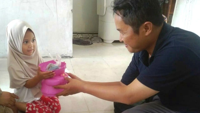 Pemilik celengan tersebut adalah gadis cilik bernama Ariqa Min Fathonah Binti Munawarih Kholil. Anak tersebut tinggal bersama ayah dan ibunya di perumahan Simeme Residence. Anak berusia 3 tahun tersebut menyerahkan celengan berwarna pink kepada petugas PKPU Human Initiative.