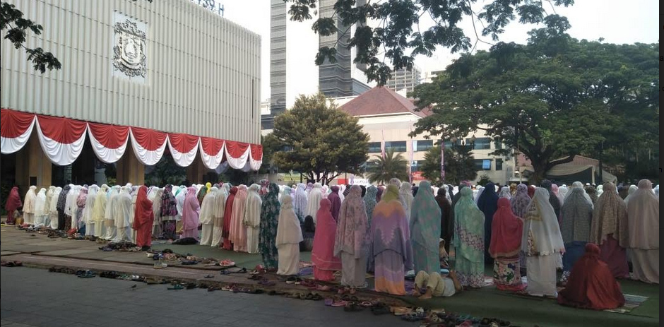 Kantor Berita Politik RMOL ratusan umat sudah mulai berada dan memenuhi halaman blok G, kawasan Bali Kota sejak Pukul 06.00 WIB. Dengan tertib mereka mengambil tempat dukuk atau shaft paling dean secara rapi.