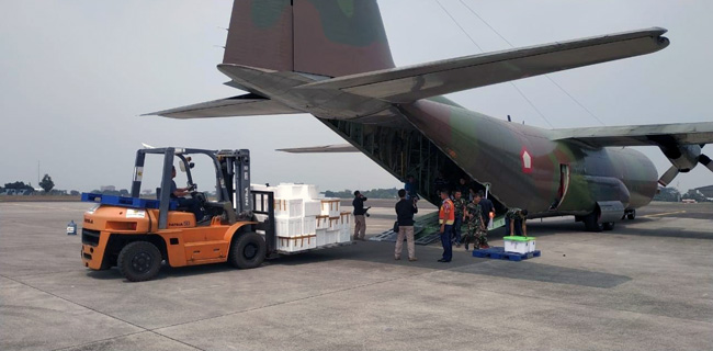 Selain mengangkut daging hewan kurban, Pesawat Hercules A-1320 juga membawa bantuan logistik seberat 1.796 kg.