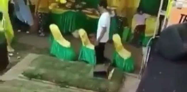 Seperti diketahui dalam video yang beredar di media sosial sejak pekan lalu, di mana panggung musik dangdut tampak berdiri di depan barisan kuburan lengkap dengan biduannya.
