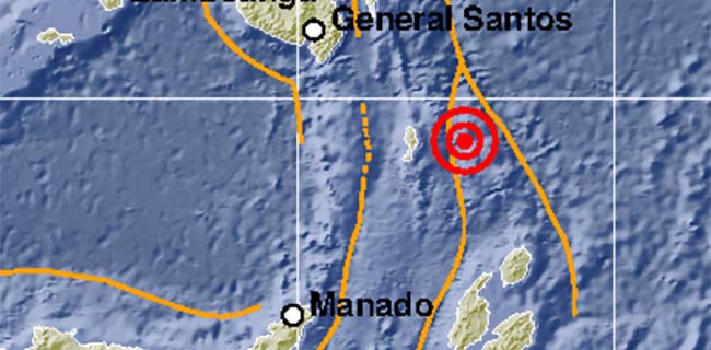 Titik gempa berada di 107 km arah timur laut Kepulauan Talaud, dengan koordinat 4,32 derajat Lintang Utara (LU) dan 127,64 derajat Bujur Timur (BT).