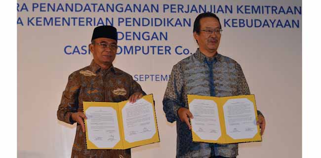 Hal tersebut diwujudkan dengan penandatanganan perjanjian kemitraan oleh Mendikbud Muhadjir Effendy dan Wakil Presiden Eksekutif Casio Computer Hiroshi Nakamura.
