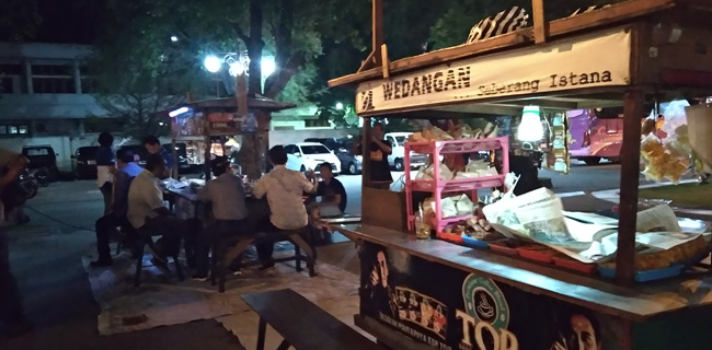 Di halaman depan pendopo, Pemkot Solo juga memborong setidaknya lima gerobak angkringan wedhangan dan satu gerobak bakso.