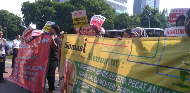 Aksi itu diikuti oleh sejumlah mahasiswa yang tergabung dalam Somasi. Rencananya setelah melakukan aksi di depan Kemendag, mereka juga akan melakukan aksi di depan Istana Negara.
