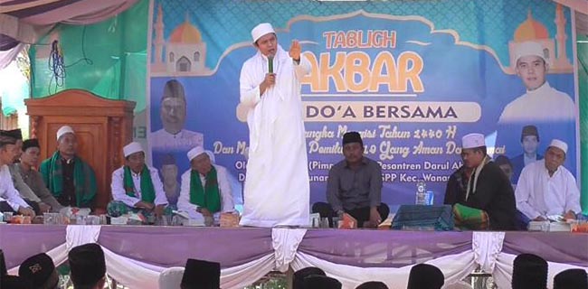Dalam ceramahnya, pimpinan Pondok Pesantren Darur Abror, H Oyong mengajak masyarakat untuk menciptakan suasana yang sejuk dalam menghadapi hajatan demokrasi Pemilu 2019 mendatang.