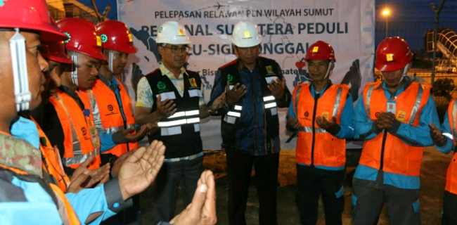 Pemberangkatan tim relawan tersebut ditandai dengan pelepasan secara simbolis oleh Direktur Bisnis Regional Sumatera PLN, Wiluyo Kusdwiharto, dan General Manager PLN Wilayah Sumatera Utara Feby Joko Priharto di Bandara Internasional Kualanamu, Deliserdang, Sumatra Utara.