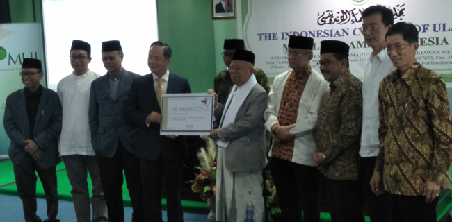 Penyerahan tersebut dilakukan oleh Kepala Perwakilan Taipei Economic and Trade Office di Indonesia, John C. Chen mewakili pemerintah dan rakyat Taiwan yang diterima langsung oleh Ketua Umum MUI, Ma'ruf Amin.
