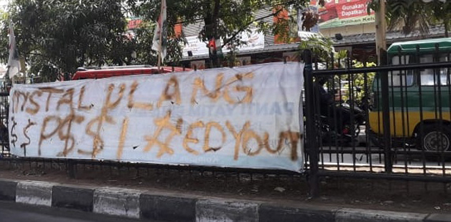 Spanduk tersebut bertuliskan "Instal Ulang PSSI, #EdyOut".
