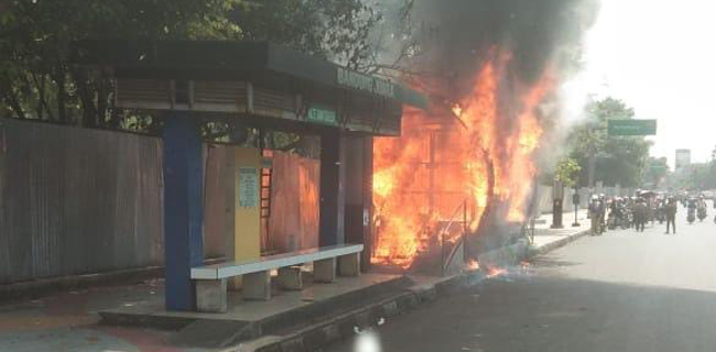 . Kebakaran terjadi di halte bus di Jalan BKR, Tegalega Kota Bandung pada Kamis (25/10). Api diduga berasal dari arus pendek listrik di halte tersebut. Temukan berita-berita hangat terpercaya dari Kantor Berita Politik RMOL di Google News.