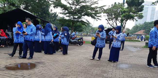 Kantor Berita Politik RMOL pada pukul 07.48 WIB, para puluhan PNS yang terlambat tidak diperkenankan masuk ke kawasan Monas. Kebanyakan dari mereka menunggu di kawasan kuliner Lenggang Jakarta dekat parkiran IRTI Monas.