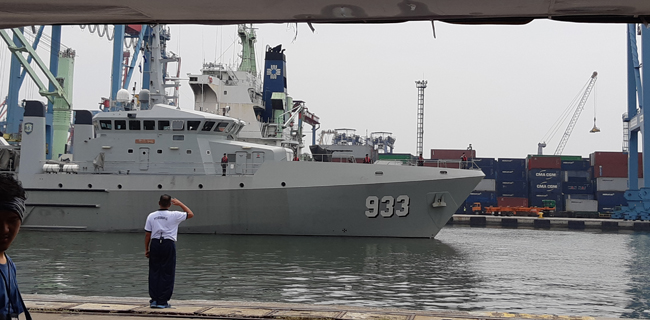 KRI Sikuda 863 bersandar di Dermaga JICT II, Tanjung Priok, Jakarta Utara. Kapal ini bersama kapal lain yang tergabung dalam tim SAR melakukan misi kemanusiaan evakuasi korban Lion Air JT-610.