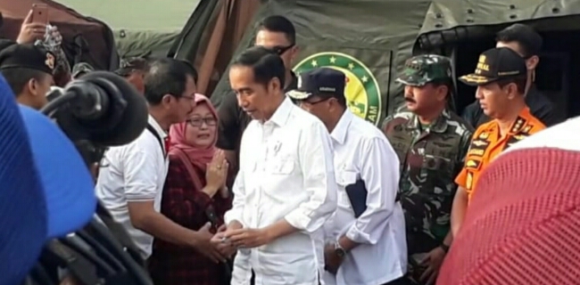 Ditemani suami Moch Bambang Sukandar, Santi langsung menghampiri Jokowi yang sedang melakukan peninjauan di Posko Terpadu Evakuasi Korban Kecelakaan Lion Air JT 610 di Dermaga Jakarta International Container Terminal (JICT) 2, Pelabuhan Tanjung Priok, Jakarta Utara, Jumat (2/11)