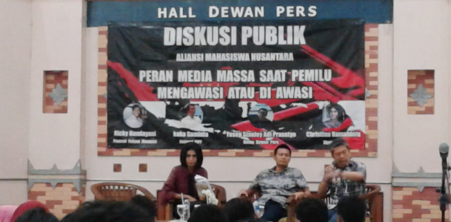 Nah, di era Pak Jokowi ada tekanan, meski tak besar. Ya ada ombak-ombak kecil," ujar Ricky Handayani saat didapuk menjadi pembicara dalam Diskusi Publik Aliansi Mahasiswa Nusantara bertema 'Peran Media Massa Saat Pemilu: Mengawasi atau Diawasi?' di Gedung Dewan Pers, Kebon Sirih, Jakarta Pusat, Selasa (06/11).