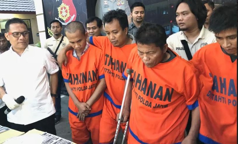 Direskrimum Polda Jatim Kombes Pol Agung Yudha Wibowo, keempat pelaku yang berhasil dibekuk itu adalah S (39 tahun) warga Bangkalan, dia ditangkap saat berada di Probolinggo. Tersangka kedua adalah SS alias Odi (55 tahun) otak dari aksi perampokan ini, dia diamankan di Probolinggo. Tersangka ketiga adalah SB alias Jatim (33 tahun) dia ditangkap di Bangkalan. Sedangkan tersangka ke empat adalah KA (56 tahun).