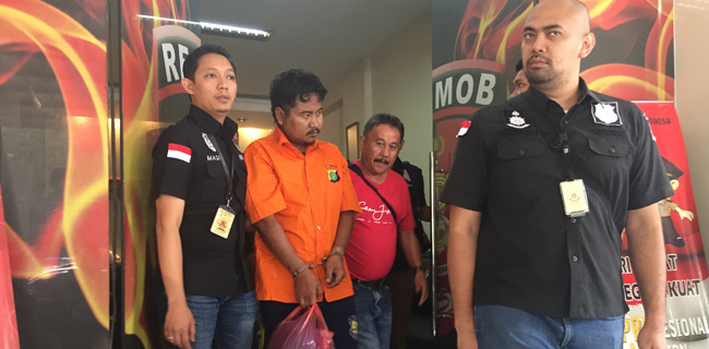Mengenakan baju tahanan, Nurhadi hanya diam menunduk saat dibawa masuk ke dalam mobil Resmob Polda Metro Jaya, Rabu (21/11). Idham Anhari/RMOL