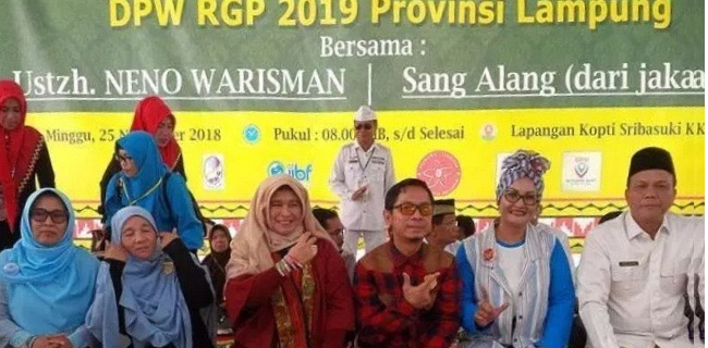 Pengurus Dewan Pimpinan Wilayah Relawan Ganti Presiden (RGP) 2019 Lampung resmi dikukuhkan. Pengukuhan itu dilakukan insiatornya Neno Warisman di halaman Gedung Kopti Kotabumi, Lampung Utara, Minggu (25/11), pukul 10.00 WIB.