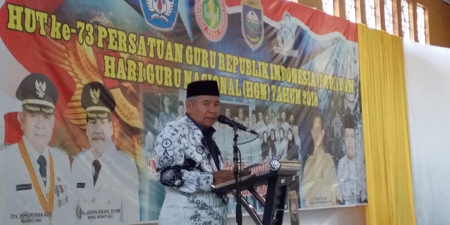Janji itu disampaikan Kuryana pada puncak peringatan Hari Guru Nasional dan HUT Ke-73 PGRI di Gedung Islamic Center, Senin (26/11).
