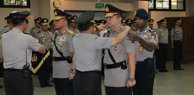 Dalam upacara itu, Kapolri memandu pengucapan sumpah jabatan.