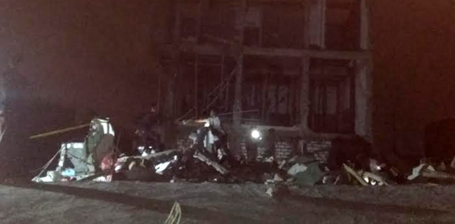 RMOL Jatim di lokasi, sebuah rumah warga ikut terdampak, tertimpa reruntuhan material bangunan yang roboh tersebut