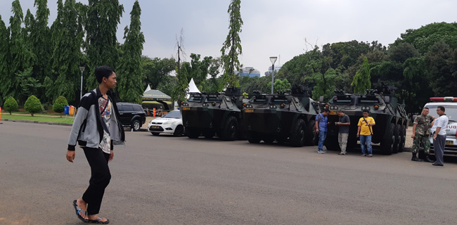 Kantor Berita Politik RMOL sejak pukul 17.00 WIB beberapa kendaraan taktis milik TNI dan Polri terparkir di belakangan panggung utama.