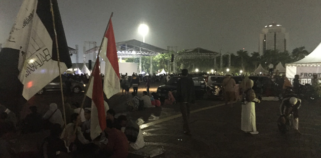 Kantor Berita Politik RMOL, Sabtu malam (1/12) pukul 20.00 WIB. Massa banyak berkumpul persis di depan panggung utama yang berada di sisi Utara Monas. Di sisi tersebut, sedang disiapkan panggung beserta pengeras suara
