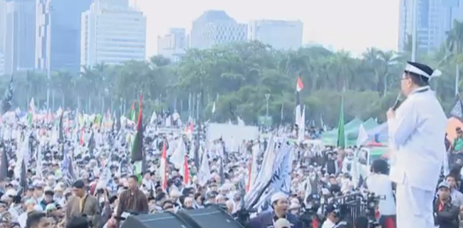 Di antara kepadatan massa itu, pembawa acara Reuni 212 mengumumkan adanya seorang anak yang hilang.