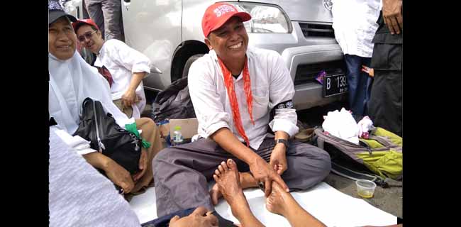 Rupanya bukan untuk beli makanan, tapi ada pijat gratis Mulyadi yang memang sengaja datang untuk melayani para peserta Reuni Akbar Mujahid 212.